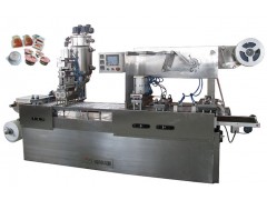 本機適用于果醬,巧克力,黃油,奶精等食品的加熱融化泡罩灌裝封合包裝。從泡罩成型到液體灌裝再復(fù)合膜封合,壓痕,到最后的沖裁成品輸出流水線全自動,大大減少人工成本。