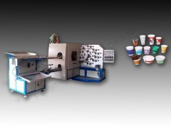 本設(shè)備為凸版印刷,以膠印的方式在塑料制品曲面印刷彩色圖片、文字等。本設(shè)備可一次性印刷出六色圖案。廣泛使用于印刷酸奶杯、冰淇淋杯、方便面碗、可口可樂杯等各種圓柱形或圓錐形塑料制品。